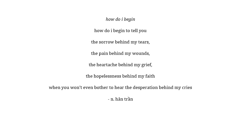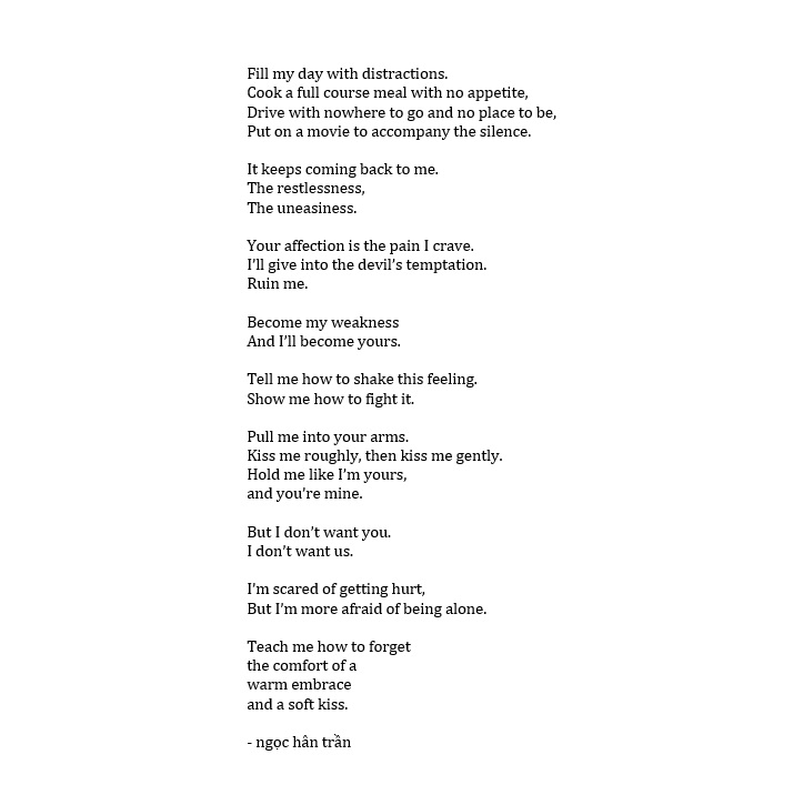 Poetry You can check out my poetry page on Instagram at @nhan.trann affection how do i begin i find i thought i knew maybe someday Facebook Instagram Twitter Link